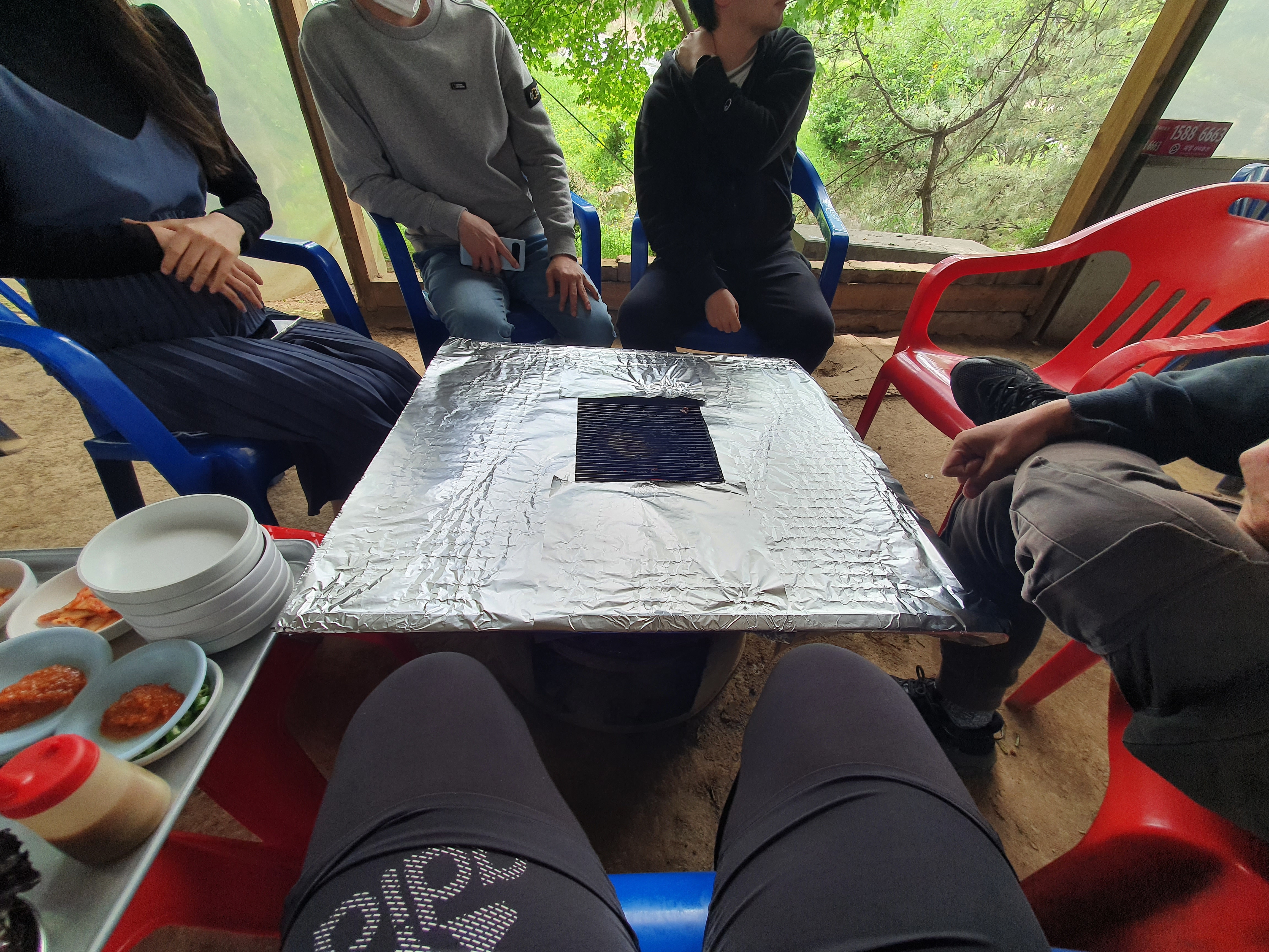 기다리는 대기 시간이 좀 길긴했지만 이야기 하느라 정신없는 친구들. 5월임에도 엄청난 더위에 낚시할 동안은 땀을 많이 흘렸지만 이곳은 꽤나 추웠다. 계곡형 지형에 옆에 작은 천까지 있어서 더 그런듯 하다.