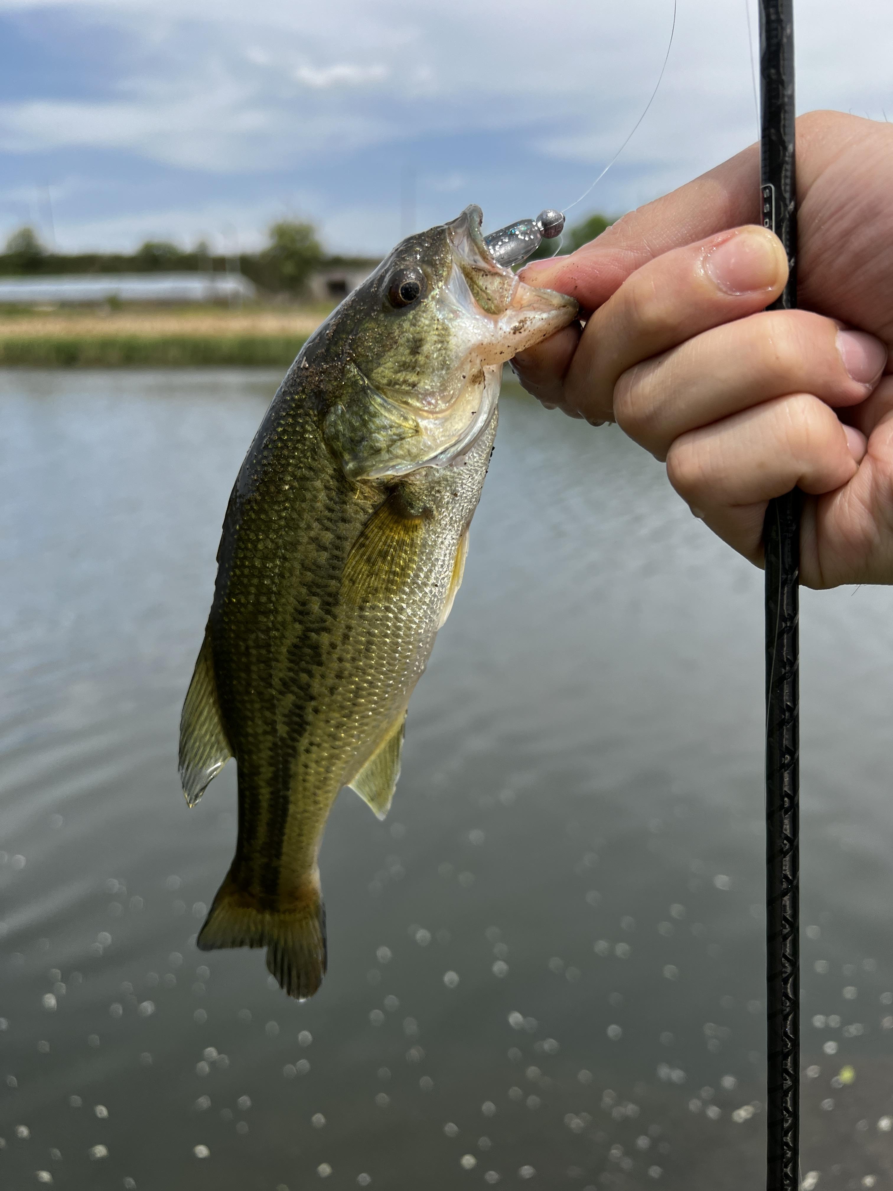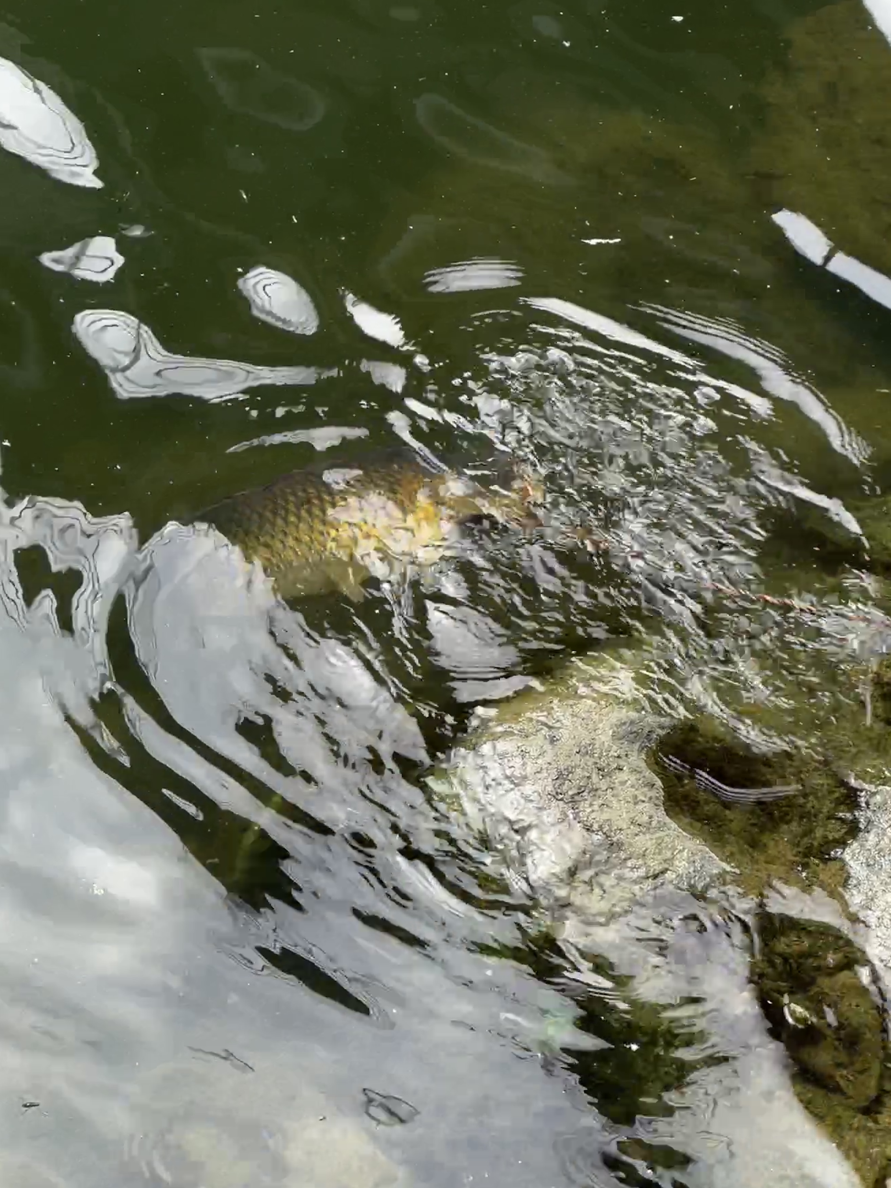 얼마 지나지 않아 2짜 갓넘는 배스가 정말 코딱지 만한 산란장을 지키고 있는 모습을 발견! 열심히 공략 해본다. 지그헤드에 아이그럽 2인치를 달고 산란장 위에 캐스팅 해서 거의 머리 까지 맞춰보고 조금 더 뒤로 캐스팅한 다음 배스 몸을 쳐보기도 했지만 입질을 잘 안한다. 결국 #알자리 위에서 콩콩 쪼아먹는 액션에 못참고 나온 한마리.